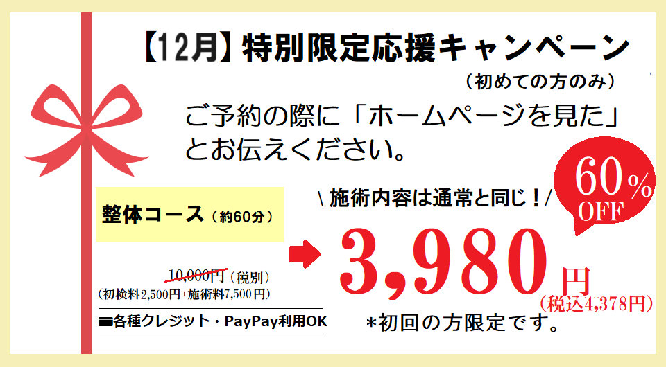 ラッキー☆整体院は完全予約制のため、事前にご予約をお願いしています。