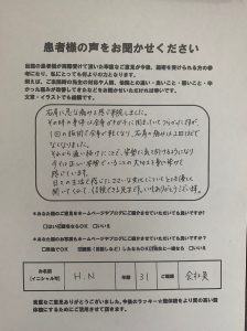 始めは「えっこれだけ」と思われると思いますが、嘘のように痛みが取れていきます。先生を信じて大丈夫です。